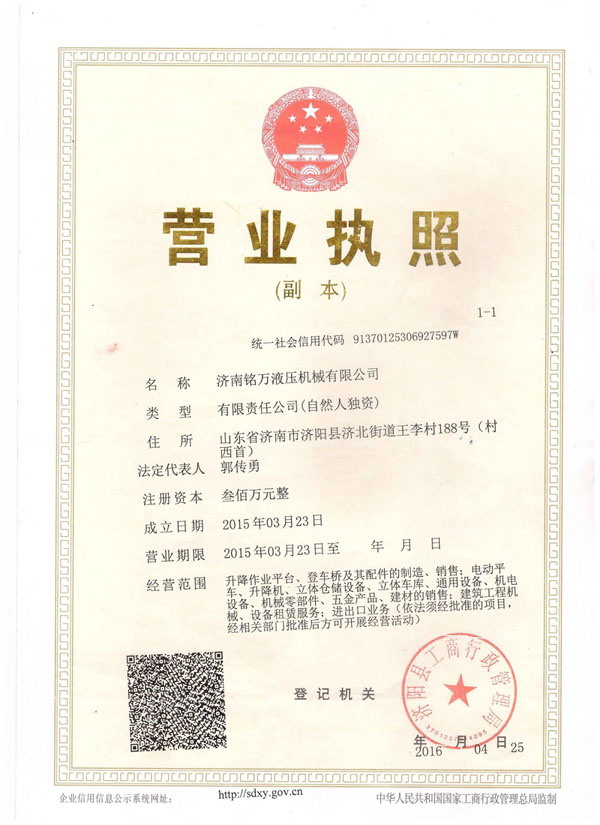 濟南銘萬液壓機械有限公司【原濟南機械廠】,是全國制造液壓升降機、升降平臺的廠家,產(chǎn)品有八大系列六十多個品種,規(guī)格齊全、質(zhì)量穩(wěn)定、安全可靠、方便快捷;產(chǎn)品銷往全國各地,深受用戶好評。升降機廠家技術(shù)力量雄厚,產(chǎn)品設(shè)計先進、工藝成熟、實驗檢測手段完善,“質(zhì)量第一,用戶至上”是我們的宗旨。 本公司采用先進的管理手段,嚴密的質(zhì)量監(jiān)控體系和良好的售后服務隊伍為我們的產(chǎn)品走向市場創(chuàng)造......
